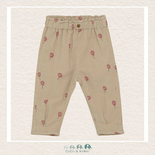 Minymo Baby Corduroy Pants with Pink Flowers: Size 3M to 18m