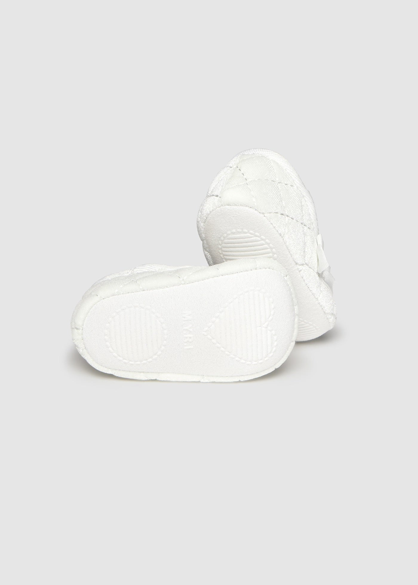 Mary Jane style shoes for newborn baby girl, a classic and timeless style to go with elegant outfits. Shoes with inner lining and breathable cotton insole. Elastic strap to improve foot support and stability. Decorative bow. This design belongs to our Barefoot line, with a flat sole (zero drop), non-slip and rounded last, without reinforcements or metal parts. It is light, wide and respectful of children's feet. In addition, it has an antibacterial and breathable insole.