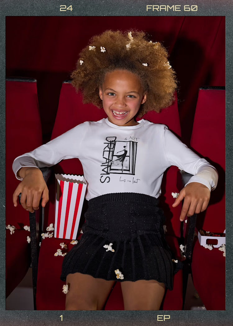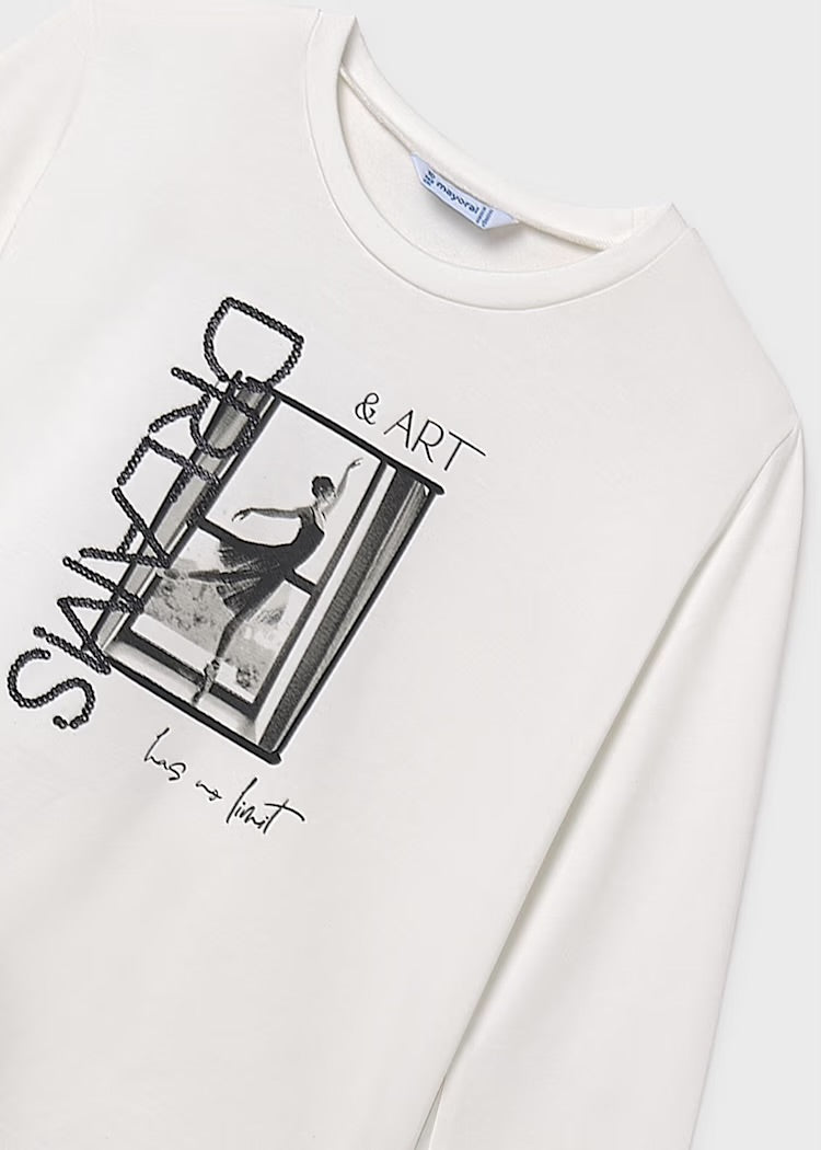 Long sleeved T-shirt for girls. Round neckline. Ballerina print. Designed in Spain.