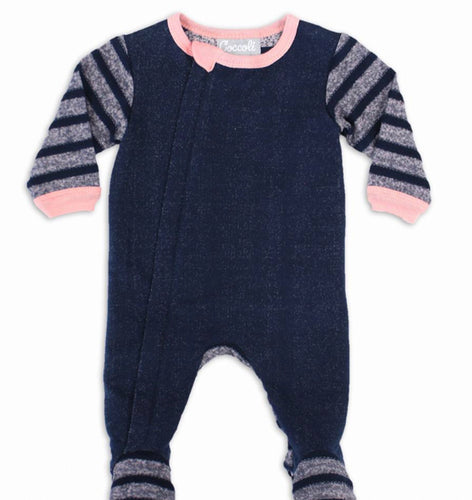 Coccoli Baby Girl Striped French Terry Footie Sleeper in Primrose and Navy : Sizes NB to 24m