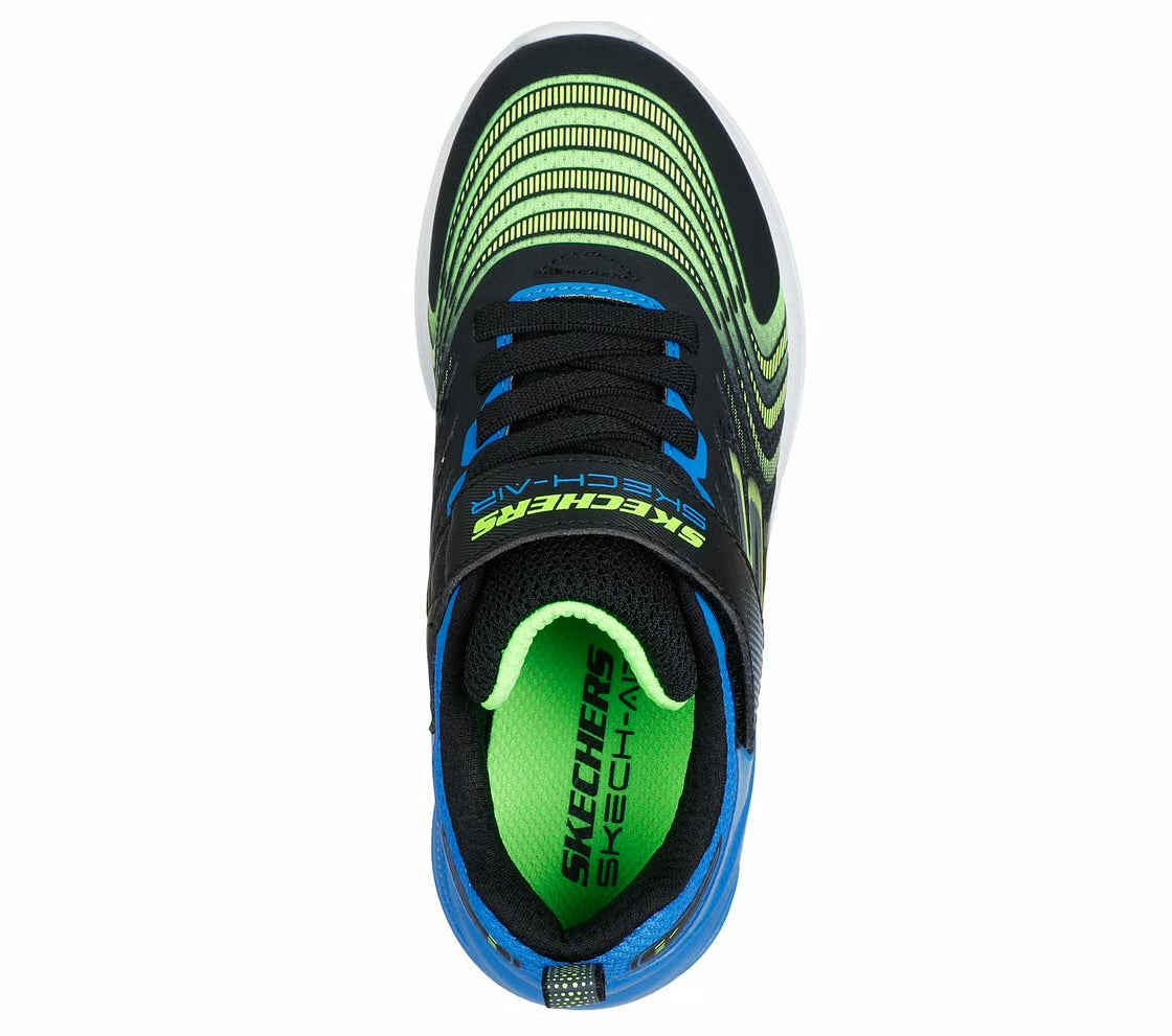 Play all day in easy-wearing comfort with Skechers Microspec Max Advance - Vortivox. This lightweight Skechers adaptive closure design features a mesh and synthetic upper with a stretch-lace front, a hook-and-loop instep strap, and a cushioned Skech-Air® midsole.