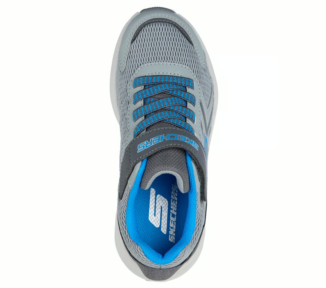 Play all day in easy-wearing comfort with Skechers Microspec Max Advance - Vortivox. This lightweight Skechers adaptive closure design features a mesh and synthetic upper with a stretch-lace front, a hook-and-loop instep strap, and a cushioned Skech-Air® midsole.