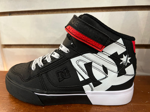 DC Pure High Top Elastic Lace Hightop in Black/White Logo Print : Size 11 to 7