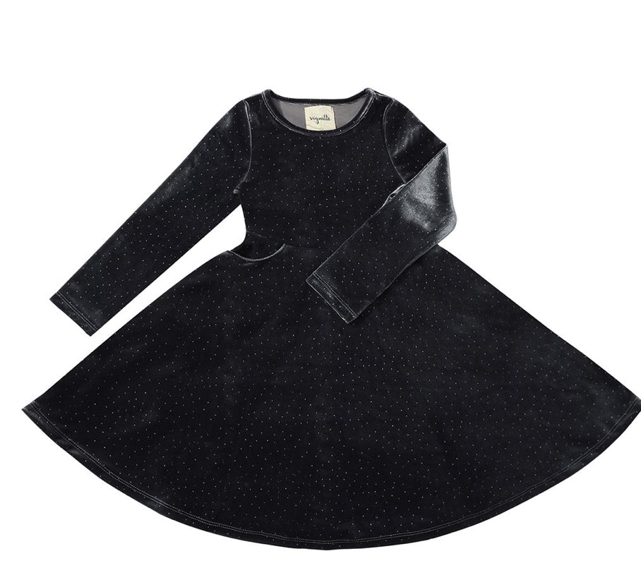 Vignette Girls Charcoal Glitter Velvet Party Dress: Sizes 8 to 14 Years