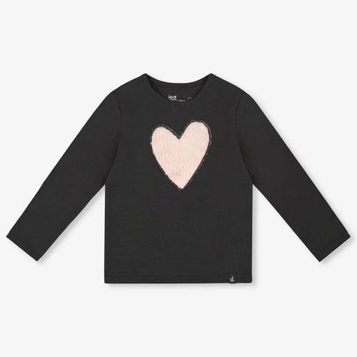 Deux Par Deux Long Sleeved Black Top with Fuzzy Heart: Size 2 to 12