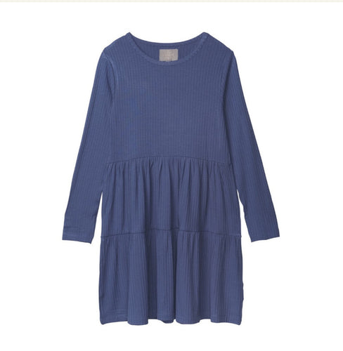 Creamie Vintage Indigo Ribbed Viscose Dress: Size 7 to 14