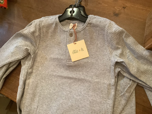Ettie & H Soft Ribbed Cotton Henley Tee in Grey: Sizes 2 to 7 Years