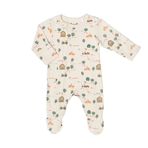 Coccoli Farming Print Zipper Footie : Size NB to 18M