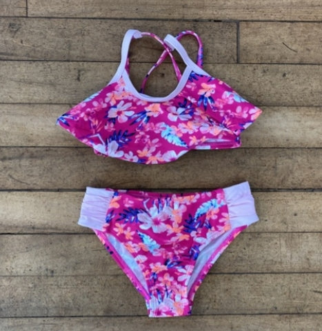 Mandarine & Co Girls Bright Pink Floral 2 Piece Swimsuit : Sizes 2 to 7