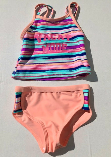 Girls Vacay Mode Striped Two Piece Swimsuit: Sizes 2 to 7