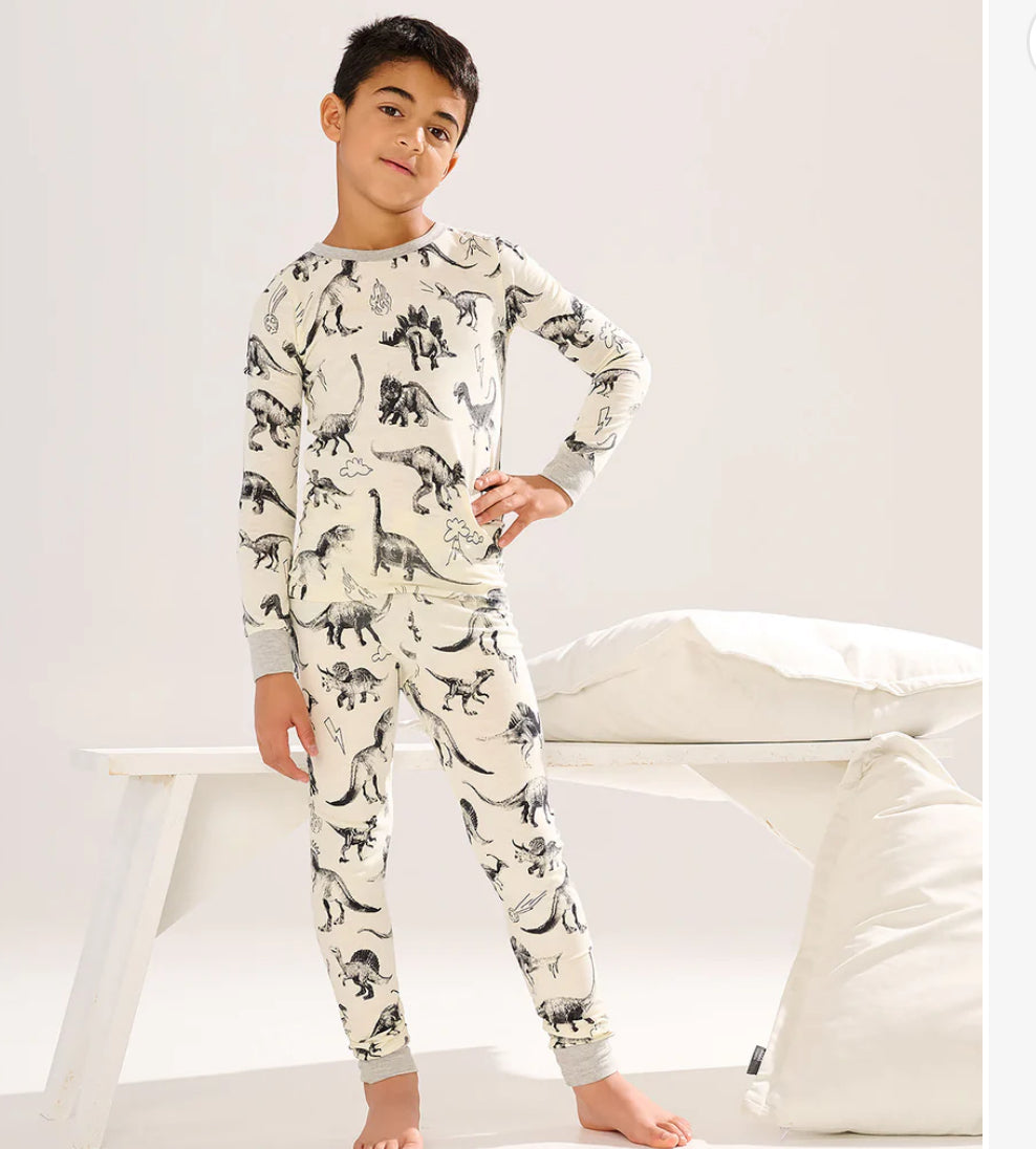 The Boys Dino Extinction Pajama Set is built for bedtime fun! Crafted from breathable, organically grown cotton, this set includes a long-sleeve top and matching psnts with cool Dino prints. Perfect for warm nights and prehistoric dreams!
