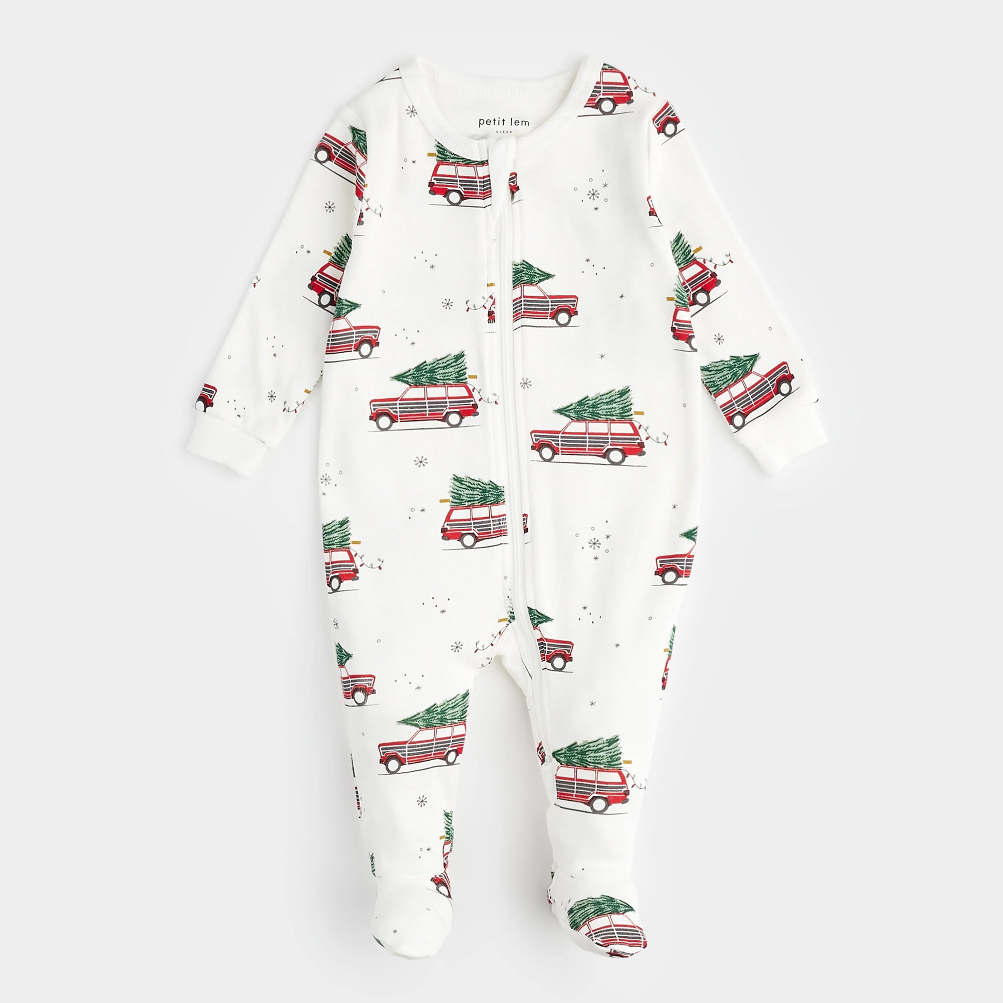 Whether you’re driving elsewhere for the holidays, or staying at home, your littlest elf will be snug as a bug in this Festive Truck sleepsuit. Perfect for families that love to snuggle, there’s matching PJs for older siblings and mom. Made from super-soft organically grown cotton rib, the one-piece is delicate on their skin, keeping them comfy and warm through chilly winter nights. Integrated feet help to keep tiny toes toasty while the ribbed cuffs leave their hands free to discover the magic of the season. The two-way zip makes for easy changing, making the sleepsuit a total dream for busy parents and sleepy babies.